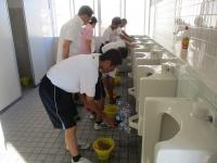 7月30日(日)、早朝からPTAはグランドを中心に奉仕作業、野球部員はかが能美掃除に学ぶ会の方々の指導を受けて、校舎内のトイレ掃除に励みました。PTAの奉仕作業では、早朝にも関わらずたいへん多くの方々にご協力いただき、本当にありがとうございました。おかげさまで、側溝やグランド沿いが綺麗になりました。野球部員も集中してトイレ掃除に取り組み、便器がピカピカになりました。清掃活動にご理解とご協力をいただいた皆さんに、心より感謝申し上げます。“いいねぇー 根上中!”