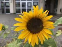 お盆を過ぎてもまだまだ暑い日が続いています。生徒玄関前では、1学期に生徒会で植えたひまわりが元気よく咲いています。先日の台風にも負けず、太陽の光を浴びて日々成長しています。中庭では、あさがおもぐんぐんと成長してきました。暑い中、水やり当番に頑張ってきた生徒会の皆さんのおかげです。生徒会の皆さん、お疲れさま。2学期のスタートも、このひまわりのような根上中の皆さんの笑顔と会えることを楽しみにしています。2学期も頑張ろう!「いいねぇ~!根上中!!」