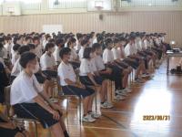 8月8日(火)は、1・2年生の学年登校日でした。連日猛暑が続いていますが、久しぶりに生徒たちの元気な姿を見ることができました。8月6日・9日の広島・長崎に原爆が投下された日が近いことから、両学年とも平和学習を通して命や平和の大切さを学んでいました。今日を節目として、平和に思いを馳せ、そして夏休み後半も充実したものにしていってほしいと願っています。