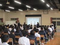10月16日(月)の5・6限目に、警察職員の方々に来校いただき、1年生を対象にピュアキッズスクールを実施しました。今回のねらいは、「インターネットに潜む危険性」と「インターネットの正しい使い方」にありました。警察職員の方々と各学級担任の協力で授業が進められ、生徒は実際にあった事例に基づいて自分の考えをまとめていました。インターネットはとても便利ですが、危険性をしっかりと理解したうえで正しい使い方ができるとよいですね。“がんばろう 根上中1年生”