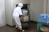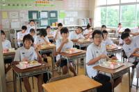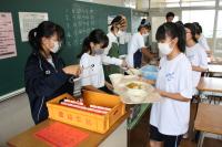 9月3日(火)11:40、給食センターからのトラック第1便が到着しました。4台の真新しいワゴンに載せられたみんなの給食は、新設された搬入口より運び込まれ、配膳室で各クラスの配膳車に分配された後、教室へと運ばれます。今日のメニューはビーフカレーとふるふるゼリー。初めてのセンター給食に、みんなワクワクです。久しぶりにみんなで食べる給食は最高に美味しく、みんな笑顔です。給食づくりに関わってくださっているたくさんの方々への感謝の気持ちを忘れず、明日からも美味しい給食を楽しみにしています。