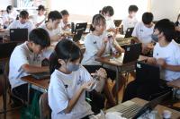 9月30日(月)5限、1年生はCBTウォーミングアップ問題に取り組み、3学年すべてが準備を終えました。保護者向けには、能美市教委よりコドモンでお知らせ済みですが、能美市では小学校4年生から中学校3年生までの全児童生徒が「標準学力調査」CBTモニター実施を行います。CBTとは、「Conputer Based Testing」の略称で、コンピュータを使用した試験方式のことです。文科省が全国学力・学習状況調査を今後CBT方式に移行していくことを受けての先行実施となります。PCの使用にはすっかり慣れた生徒たちではありますが、実施していく中で課題も見つけられればと、考えています。調査は3学年とも10月10日(木)に実施予定です。