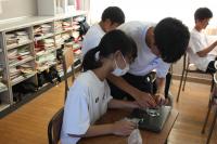 9月19日(木)午前、1年生は校外学習として能美ふるさとミュージアム(のみふる)等で体験学習を行いました。のみふるでは、古墳展示や企画展を見学したり、組紐作りを体験しました。生徒たちにとっては、まもなく開館4年を迎える素晴らしい施設で、能美の歴史や魅力に触れ、自分たちのふるさとについて知るたいへん良い機会となりました。また、お隣の防災センターでは、さまざまな災害から身を守るための体験を通して、防災について考えることができました。そして最後には、芝生の広場で学年レクレの人間玉入れも思いっきり楽しみました。各施設の皆様、お世話いただき、本当にありがとうございました!