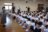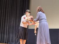 9月9日(月)、3年生は合同終礼を行い、学年委員会主催で明日から産休に入られる森田先生のお別れ会を開いてくれました。代表の生徒からは、メッセージや花束が手渡され、これまで国語を教えてくれた森田先生への感謝の気持ちが伝えららえました。森田先生も生徒たちの思いに応え、後半に向けてのエールを送ってくれました。互いにとても温かく、優しい雰囲気の中で、心と心が通い合う、たいへん素晴らしい会になりました。