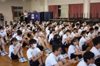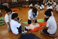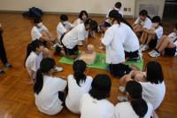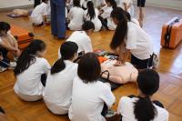 9月11日(水)、2年生は保健体育の授業で救命救急講習を行いました。講師は能美市消防本部よりお招きした3名の先生方です。もし、身近に倒れている人がいたら、中学生として何ができるのか、万一の時のために準備しておくことは大切です。今回は、心肺蘇生の手順として、主に胸骨圧迫やAEDの使い方などについて教えていただきました。私たちの日頃の心がけと準備次第で、救える命があることを学ぶ、貴重な講習となりました。講師の先生方、お忙しい中、ありがとうございました。