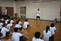 9月27日(金)5限に2年生、6限に3年生が運動会のダンス講習会を行いました。講師は金城大学の廣瀬先生とダンス部の3名の学生さんで、一クラス約20分の指導を受けました。現時点でのダンスを一度見ていただいた後、具体的なアドバイスを受けると、ガラッと雰囲気が変わってしまうのが本当に驚きでした。表情や動きの大きさ、目線の位置など、クラスごとにいただいた多くの指導を、残りの練習で生かしていってほしいと思います。10月3日(木)の本番が楽しみです!