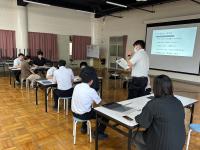 9月18日(水)放課後、若手の先生たち10名が勉強会を行いました。本校では若手教員早期育成プログラムとして、10年目までの教員を対象に、定期的に研修の場を設けています。今回は、8月末にライオンズクエストプログラム・ワークショップに参加した2名が、学んできたことを紹介してくれました。安全で安心できる学校づくりをテーマに、いじめを見逃さない学級経営などについて活発な意見交換も行われました。子どもたちのために、若い先生たちがエネルギッシュに活躍してくれることを期待しています。