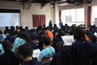10月30日(水)放課後、能美市社会福祉協議会より講師をお招きして、生徒会代表の3名がフードドライブについて学びました。フードドライブは、食品ロスを防ぐためのボランティア活動で、消費・賞味期限1か月以上の未使用の常温保存食品を集めます。学習会では、回収から支援を必要としている方へのお渡しまで、分かりやすく説明していただきました。「もったいないからありがとうに!」詳しくは、今後、生徒会からお知らせします。