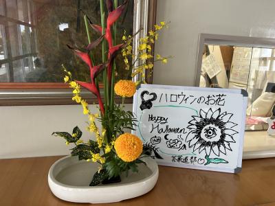 明日10月31日はハロウィンです。海外の古くからのお祭りが、少し形を変えて日本でもすっかり定着しています。茶華道部は今週、ハロウィンをお花で表現してくれました。正面玄関を入ってすぐ、独創的で美しくダイナミックな作品が目に飛び込みます。学校へお越しの際には、ぜひ、ご覧ください。