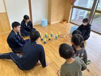 11月5日(火)午前、3年4組の生徒たちが大成保育園を訪れ、園児と手作りのおもちゃで楽しく遊びながら、保育実習を行いました。1学期は1組と3組がすでに別の保育園で体験をしましたが、2学期は残り2クラスです。体いっぱいで喜びを表現してくれる園児たちと接する中学生は、みんな本当にいい顔をしています。ご協力をいただいています校区内の保育園の先生方、本当にありがとうございます!