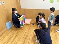 次に思春期の体の成長、妊娠そして誕生までの新しい命につながる物語。赤ちゃんの人形を使った場面では、助産師として出産に立ち会う経験をもとにした具体的なお話に、生徒も興味深々でした。