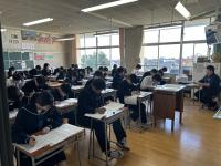 11月14日(木)4限、文部科学省指定のリーディングDXスクール事業公開授業を行い、県内外よりたくさんの先生方にご参観いただきました。1年生は学級活動、2年生は社会科、3年生は理科の授業で、ICT機器を活用した生徒たちの学びの変革への挑戦となります。一人一台端末の導入により、ここ数年、授業は大きく変化しています。本校としても、生徒たちが主体的かつ意欲的に学習に取り組んでいけるよう、今後も研究を進めていきたいと思います。ご参観いただきました皆様には心よりお礼を申し上げます。