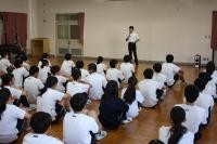 9月11日(水)、2年生は保健体育の授業で救命救急講習を行いました。講師は能美市消防本部よりお招きした3名の先生方です。もし、身近に倒れている人がいたら、中学生として何ができるのか、万一の時のために準備しておくことは大切です。今回は、心肺蘇生の手順として、主に胸骨圧迫やAEDの使い方などについて教えていただきました。私たちの日頃の心がけと準備次第で、救える命があることを学ぶ、貴重な講習となりました。講師の先生方、お忙しい中、ありがとうございました。