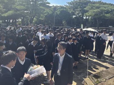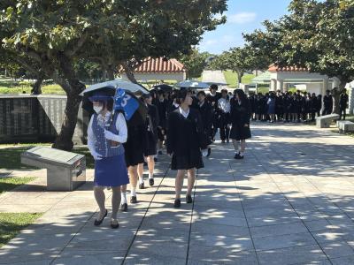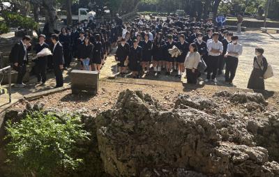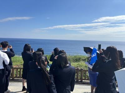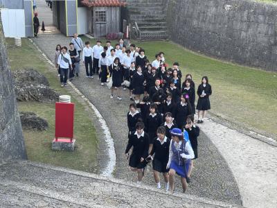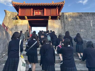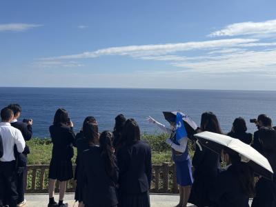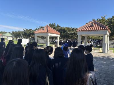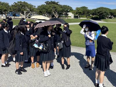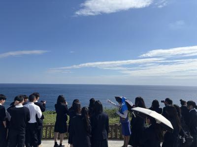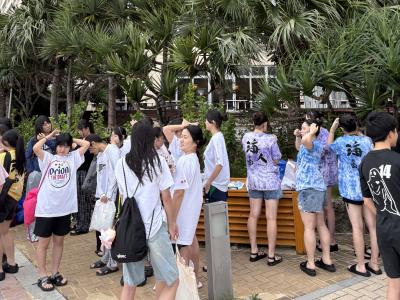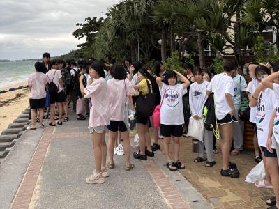 美ら海水族館では、ジンベエザメの大きさやイルカのイルカショーでの動きなど、さまざまな生物の姿に感激している様子が伺えました。生徒たちはたくさん写真を撮ったり、お土産を買ったりと満喫していました。