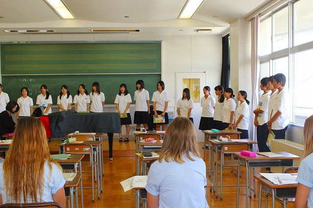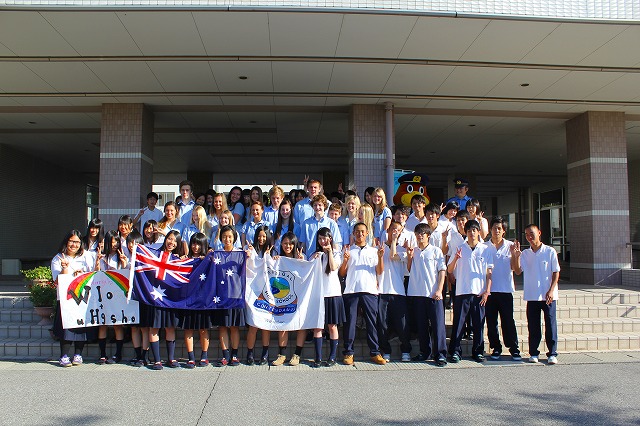 9月20日、オーストラリアから姉妹校のテリガル高校が来校し、交流をおこないました。1限に歓迎セレモニーを行い、2・3限に授業見学・参加しました。17時30分からはホストファミリーとのウェルカムパーティを行いました。9月21日、一行は市内を観光しました。