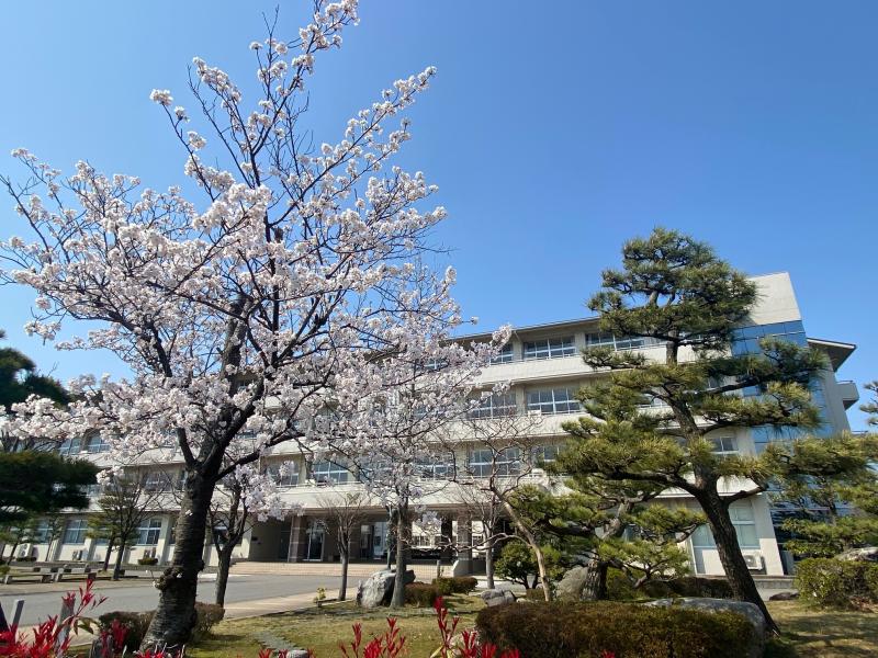きれいな桜や整備された前庭を横目に、生徒たちは元気に登校してきます。