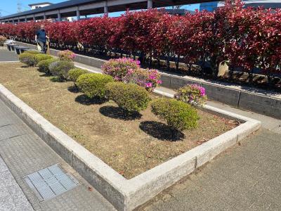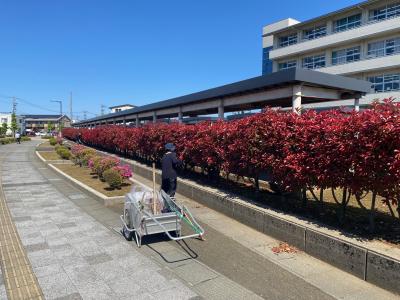 学校前の歩道を含めて、きれいに除草作業をしていただいています。