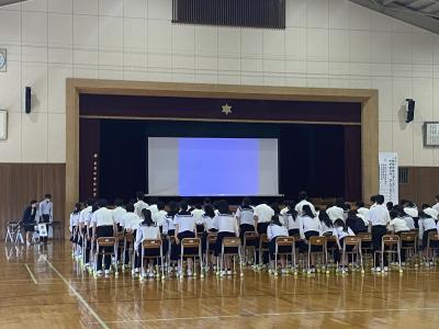 体育館に集合(全校集会)し、直接、生徒の皆さんの顔を見て話すことができないのが残念です。