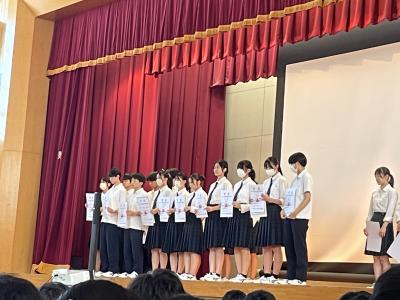本校で行われた表彰伝達式では、今年度の総体の結果を報告させて頂きました。