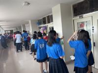 消防署の方からは、7月に「シェイクアウトいしかわ」の行動を取る訓練を行った経験からか、生徒たちは地震発生の第一報で慌てず机の下で身を守る行動がしっかり取れていたとお褒めの言葉をいただきました。本日の訓練での反省事項を踏まえ、今後、防災に関する意識をさらに高めていきたいと思います。