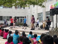 中庭ステージでは、2年生のクラスごとのステージ発表や、有志のバンド、そして教員バンドと大いに盛り上がりました。教員バンドの先生方は、生徒から拍手声援をもらい、学校全体が一つになったと感じる瞬間でした。