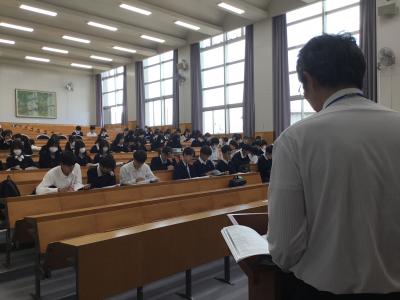 その後、川場生徒課長から、夏季休業中の生徒心得についてのお話があり、夏休み中も健康で安全に過ごせるよう、注意喚起がありました。一人ひとり、有意義な夏休みを送ってくれることを期待しています。