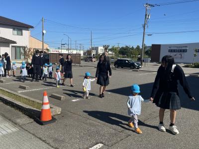 わらべ保育園の避難訓練での園児誘導補助
