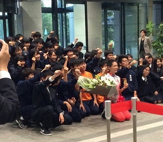 本校生徒約100名が、受賞後の鈴木選手にお目にかかることができました。