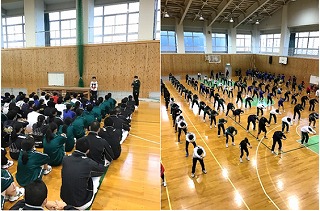 12月9日(月)の第1回合同トレーニングを皮切りに、1月・2月も運動部が中心となり、全5回の合同トレーニングを行う予定です。内容はエアロビックトレーニングが中心で基礎体力のベースアップを図ることが目標です!また、他の部活動とも交流があり、生徒たちは楽しみながらも真剣にトレーニングに励んでいます。