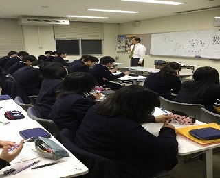 普段の授業より長い90分の講義でしたが、生徒は最後まで集中して取り組んでいました。普段の授業とは異なる部分も多かったので、生徒は新鮮な刺激を得たようです。これを機に、学習への意欲をさらに高め、高い志に向けて頑張ることを期待しています。