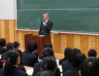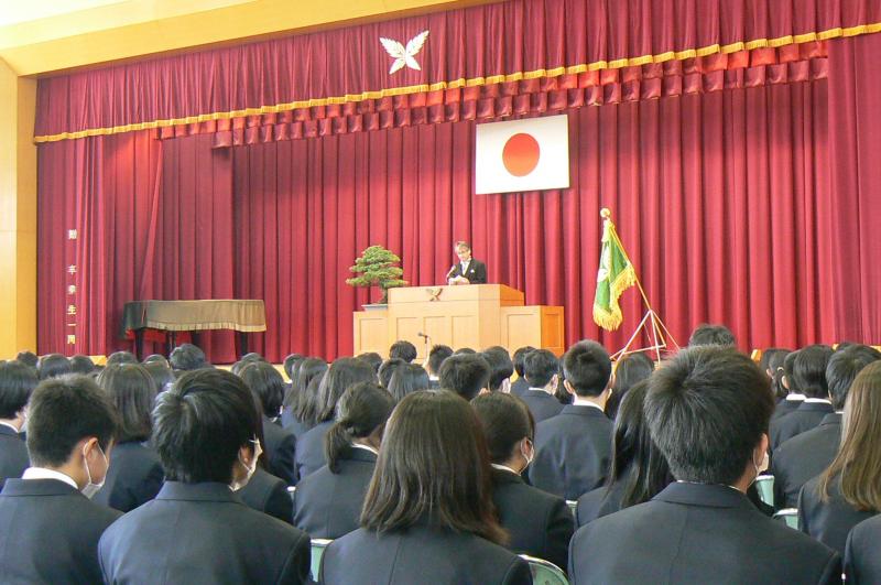 退任される山越校長先生は、勉強することの意義や大切さについて話されました。勉強して力を付けることで人生の選択肢が大きく拡がります。今、将来やりたいことがはっきりしていない人も、しっかり勉強して力をつけよう。無駄な勉強など決してありません。