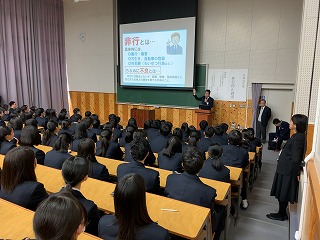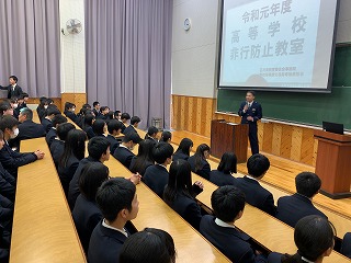 特にSNSに関する、非行の増加が問題となっており、高校生にとって身近な事例が取り上げられため、生徒たちは真剣に話に聞き入っていました。