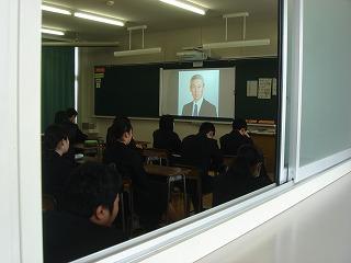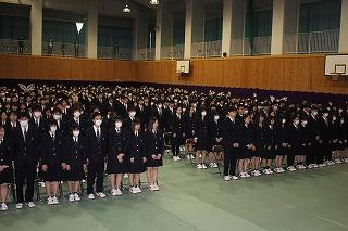 3月23日は2年生、24日は1年生だけが登校し、終業式・離任式・退任式は放送での実施です。退任・異動される先生方の写真を大きく映した教室で、生徒は静かに先生方の言葉に耳を傾けていました。