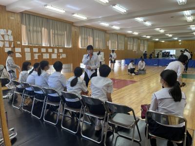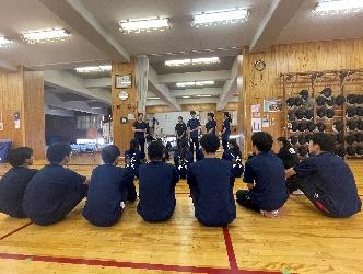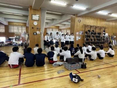 来てくれた中学生に対して、部員がルール説明をしている様子。
