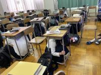 金沢西高校から、県庁前にかけて、生徒・保護者・教職員が出て