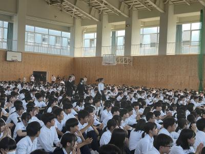松本副校長の激励のあと、生徒会長、応援団長からの応援の言葉