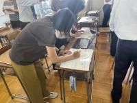 6月28日(金)期末試験最終日の午後,救命救急講習会を行いました。本格的な夏に向かい,何か事故があった際にも迅速に対応できるよう,毎年この時期に開催しています。今年も日本赤十字社石川県支部様よりお二方の講師をお招きし,各部・各ホーム保健委員の代表者約70名を対象に実施しました。生徒たちは真剣にまた活発に心肺蘇生法・AEDの活用法の実技に取り組み,非常に有意義な時間となりました。