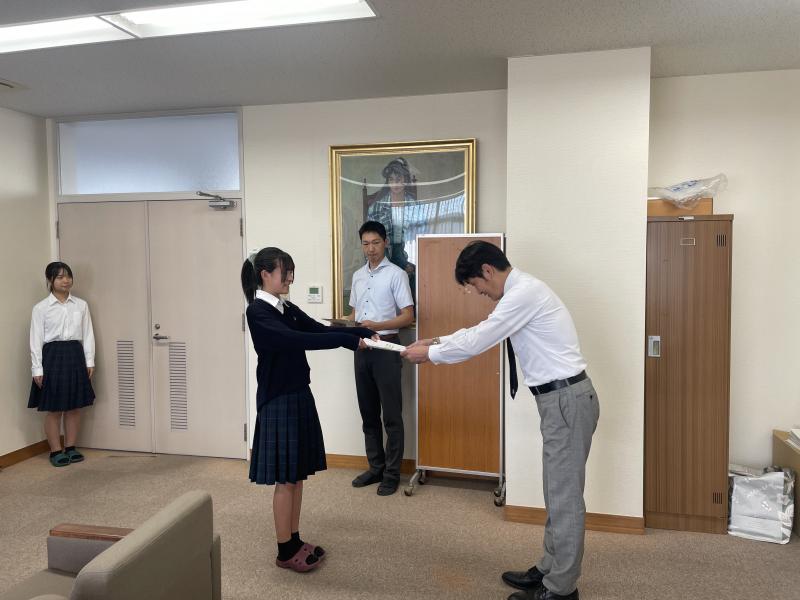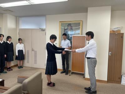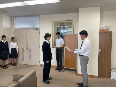 後期の生徒会役員認証式が校長室で行われました。