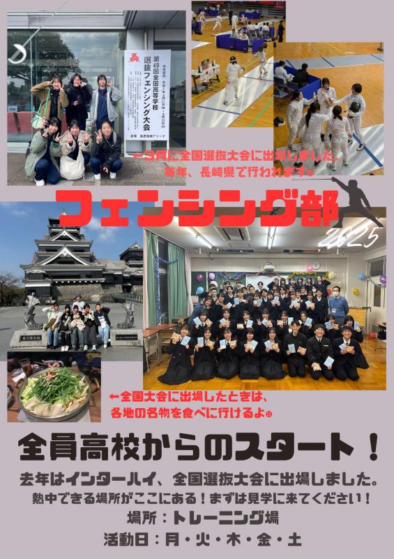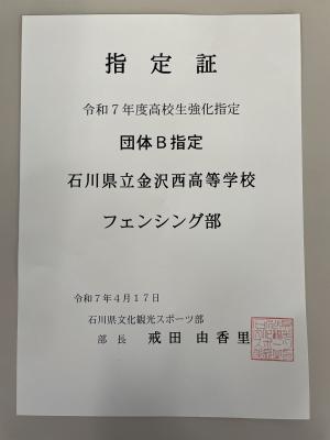 昨年度の全国選抜フェンシング大会において女子エペ団体ベスト16、また北信越大会女子個人優勝の実績が認められ、指定校となりました。