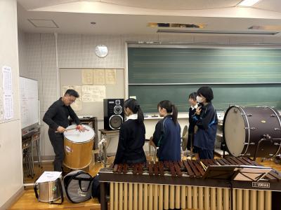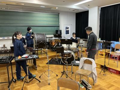 今回は打楽器のレッスンと全体合奏を指導していただきました。
