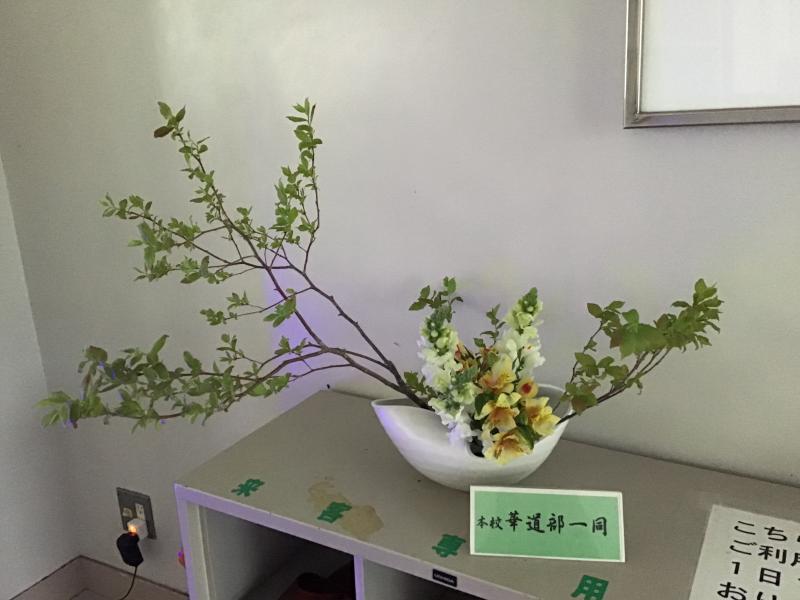 華道部では、草月流の先生から指導を受けて、毎回一人ひとりの個性を発揮した作品を作