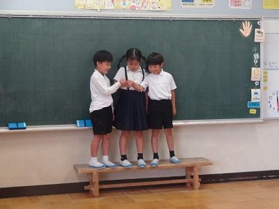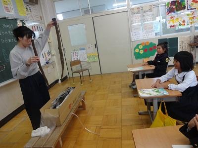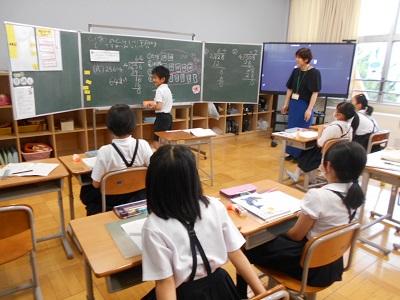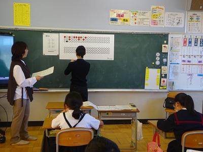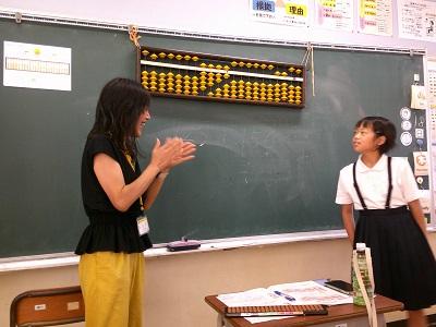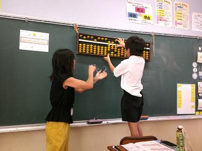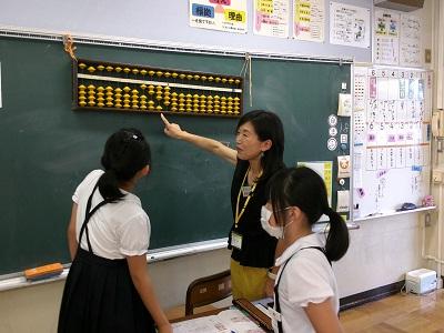 算数「そろばん」の学習で、長澤先生に来ていただき、そろばんへの数字の入れ方や、そろばんを使ったたし算のし方を教えていただきました。最初はぎこちなかったそろばんの扱いも終わるころには慣れ、すばやく数字を入れたり、すらすら計算したりできるようになりました。