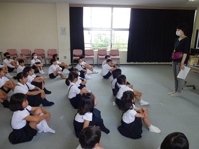 1~4年で「こころのサポート授業」を受けました。スクールカウンセラーの滋野井先生からストレスとは何か、イライラした時やつらい時の対処法について教えていただきました。実際にねむりのためのリラックス法や、呼吸法を全員でやってみました。いろいろな方法から、自分に合った方法を一人ひとりが考えていました。今日教えていただいたことをのせたプリントを配布しましたので、ぜひお家でもお話してみてください。