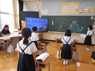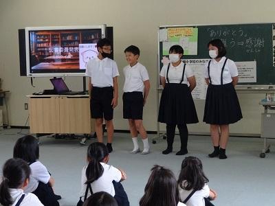 児童会タイムでは、図書委員会の「図書館クイズ」を通じて、図書館についての知識を増やしたり、西荒屋小の図書室を思い出したりすることができました。その後の今月の歌「365日の紙飛行機」は全校の心が一つになった素敵な合唱となりました。