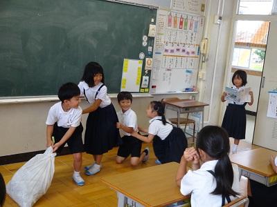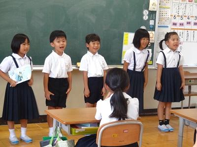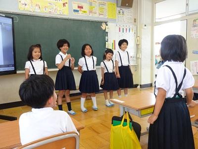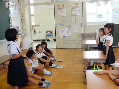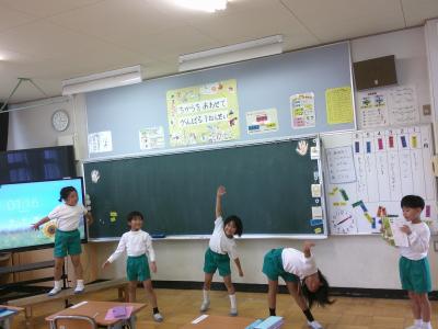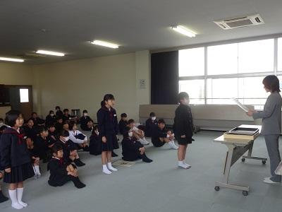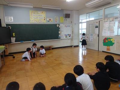 国語「おおきなかぶ」の学習で練習してきた劇を、3.4年生に見てもらいました。みんな役になりきって、楽しく発表することができました。3.4年生にたくさんほめてもらい、とても嬉しそうでした。