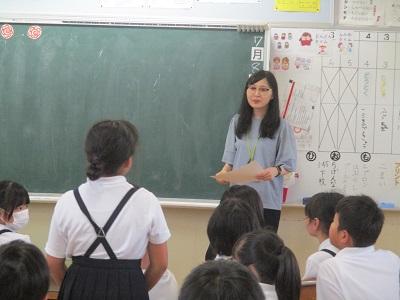 7月22日(月)3限目に1学期の終業式・平和集会・リリィ先生とのお別れの式を行いました。