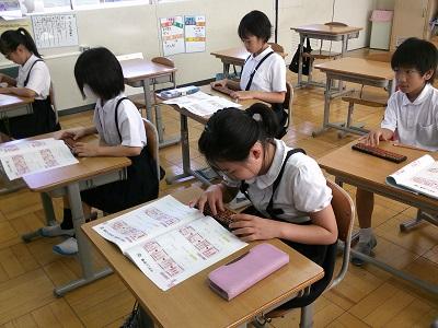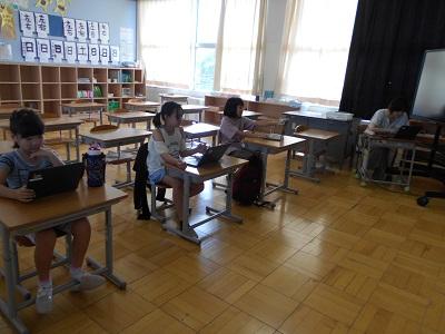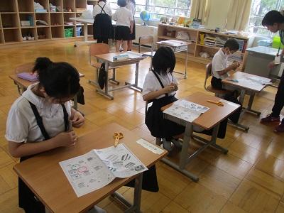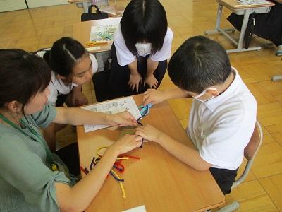 1学期最後のクラブ活動です。「スポーツクラブ」は体育館でバスケット、「パソコンゲームクラブ」は絵しりとり、そして「メイキングクラブ」は輪ゴムおりコースター作りをしました。クラブは4~6年生で行っており、普段とは違うメンバーとの交流も楽しみの1つです。今回のクラブでも仲良く声を掛け合う姿がたくさん見られ、心が温かくなりました。