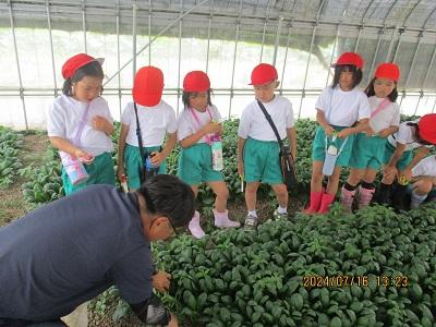 昨日、笠間農園で1ヶ月前に種をまいた小松菜の収穫をしました。大きく育ったたくさんの小松菜を、給食でみんなに食べてもらおうと、一つ一つ丁寧に切って箱に入れていきました。暑い中でしたが、みんなとても働き者でした。今日の給食のスープに小松菜を見つけると、嬉しそうに食べていました。笠間農園のみなさんありがとうございました。