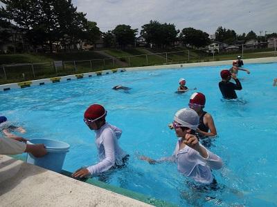 運営委員の進行で、プール集会を開催しました。ゲームで得点を競ったり、全員で水の流れをつくったりして、みんなで楽しい時間をすごすことができました。運営委員のみなさんありがとうございました。