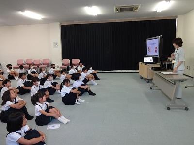 学活で「むし歯をふせぐみがき方」について養護教諭の山﨑先生からお話をしていただきました。歯垢がたまりやすい場所やきれいに歯をみがくコツを教えてもらい、実際に歯をみがきました。今日教えてもらったことをいかして、お家でも1本1本丁寧に磨いてくださいね。
